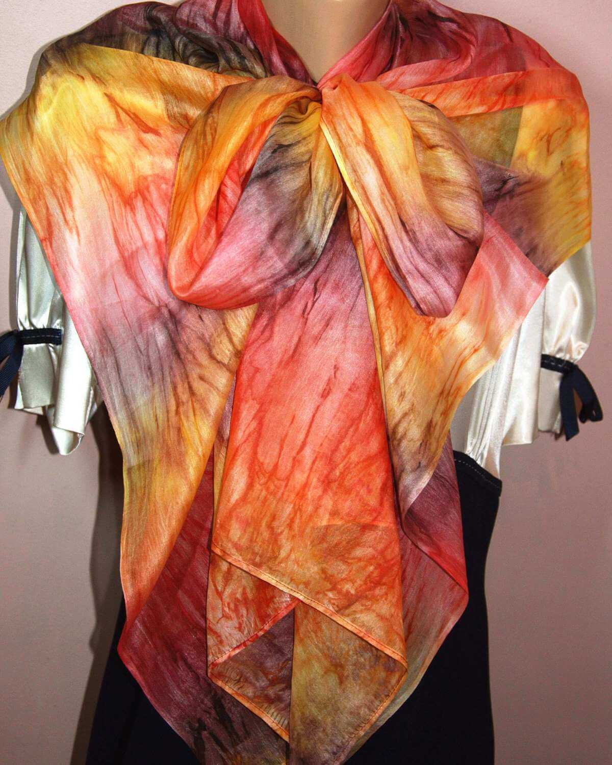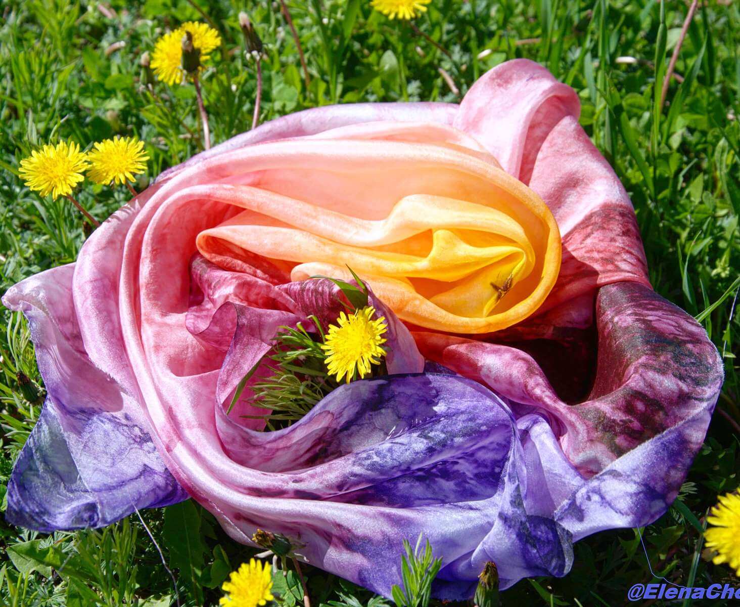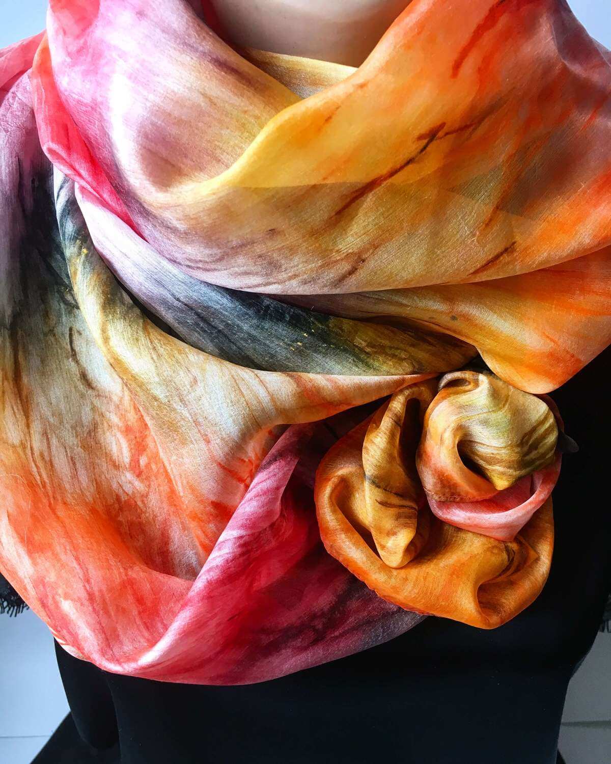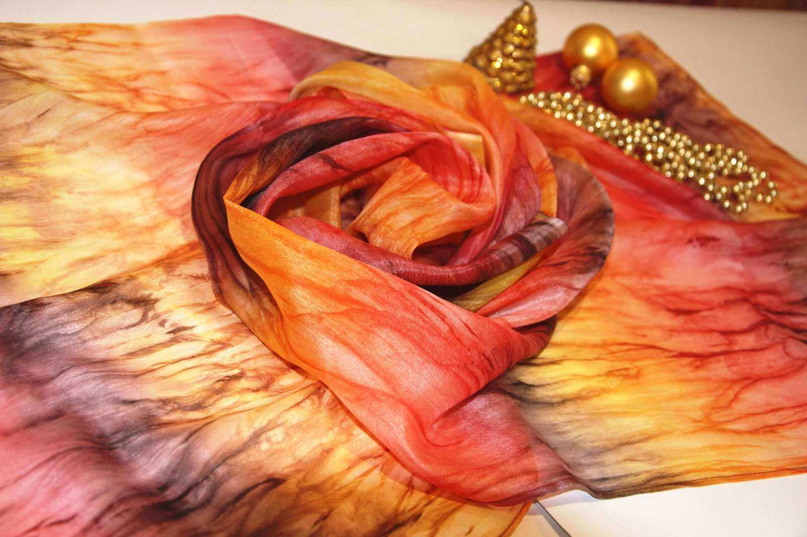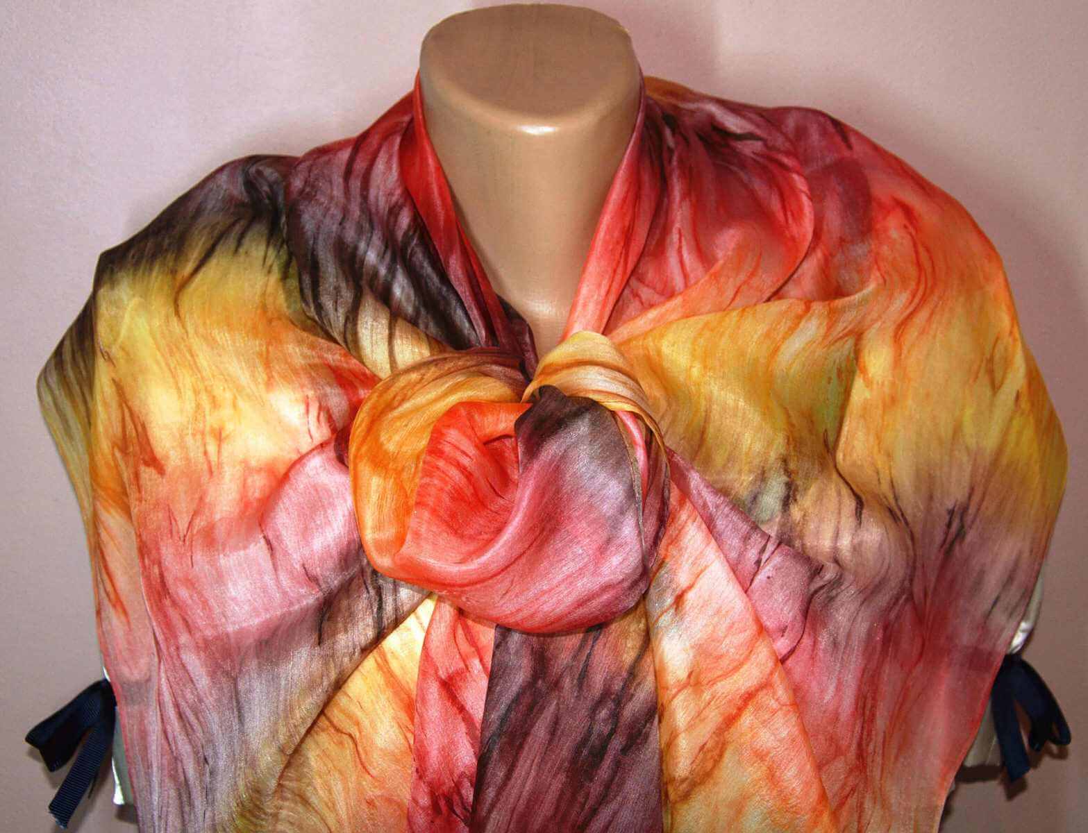 Натуральный шелк, профессиональные краски, которые не выгорают и не линяют, что позволяет сохранить изделие в первоначальном виде.