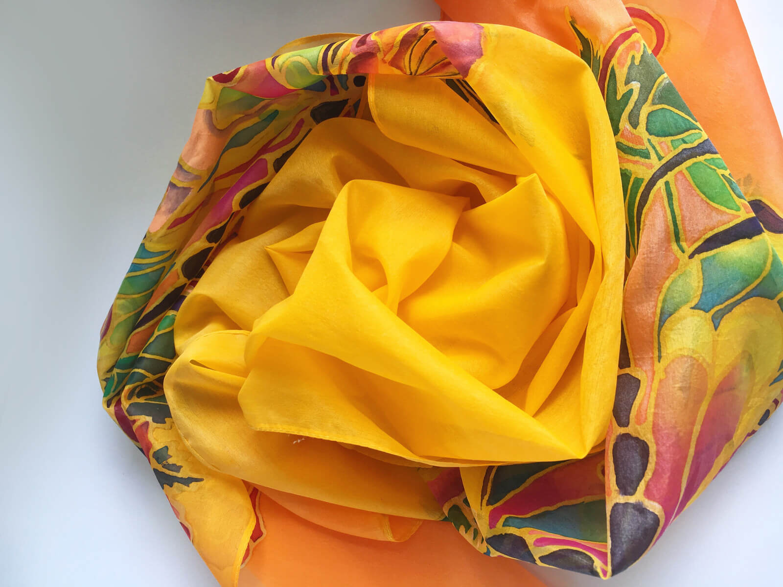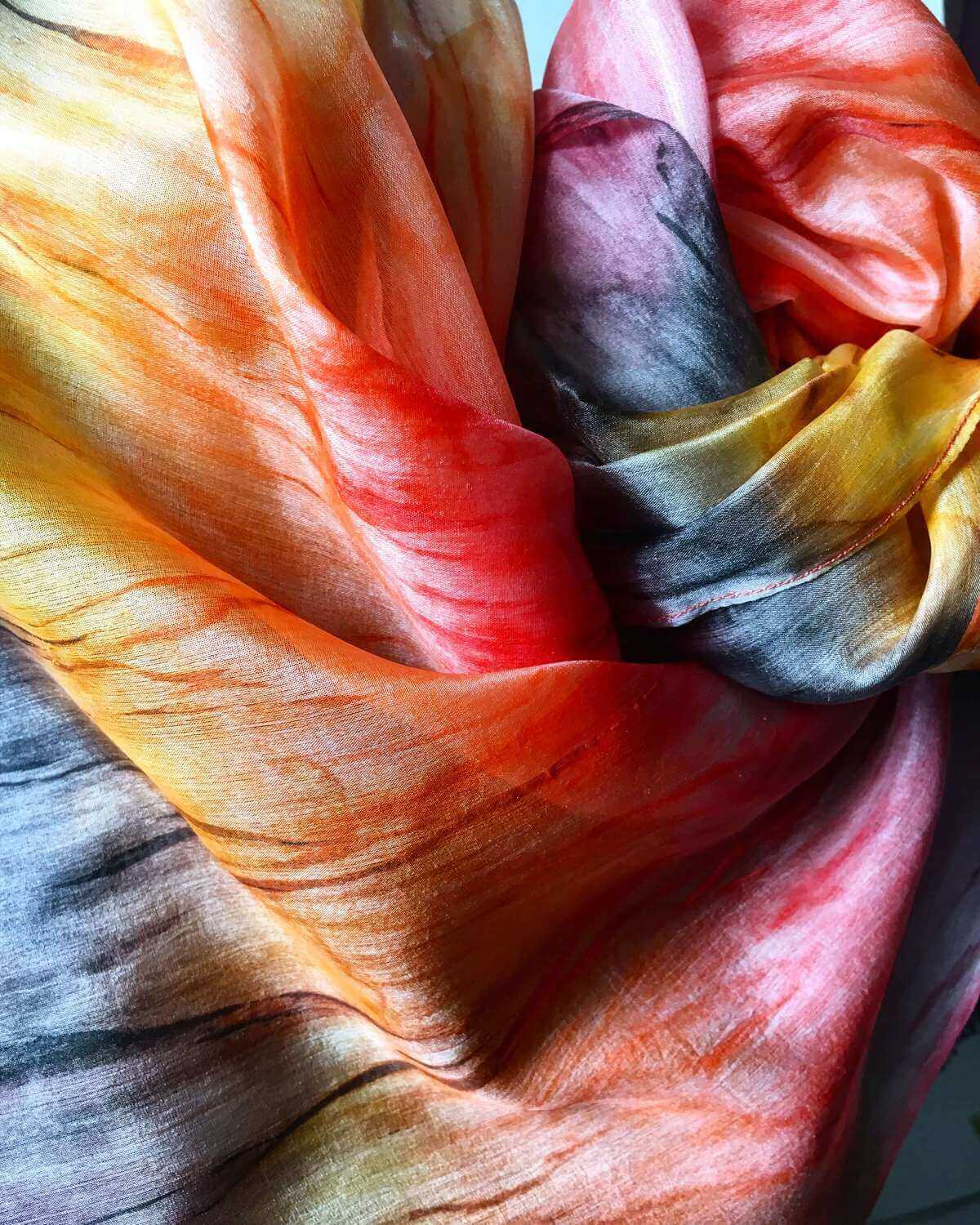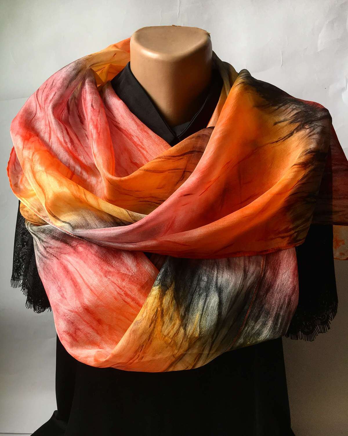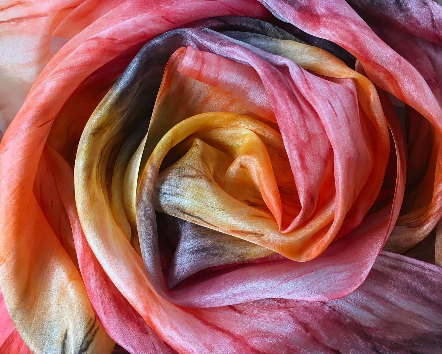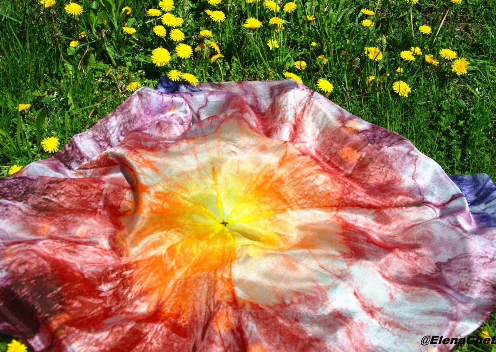 Натуральный шелк, профессиональные краски, которые не выгорают и не линяют, что позволяет сохранить изделие в первоначальном виде.