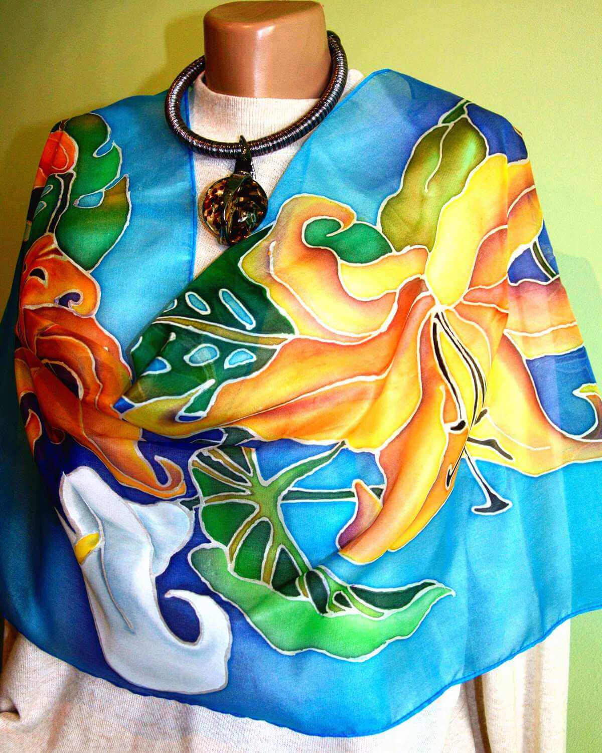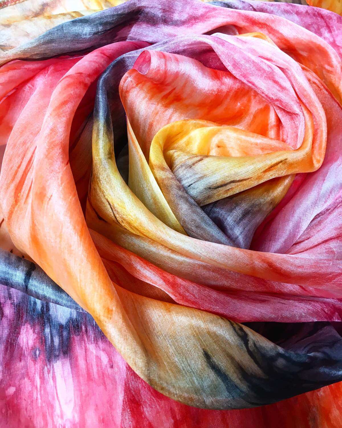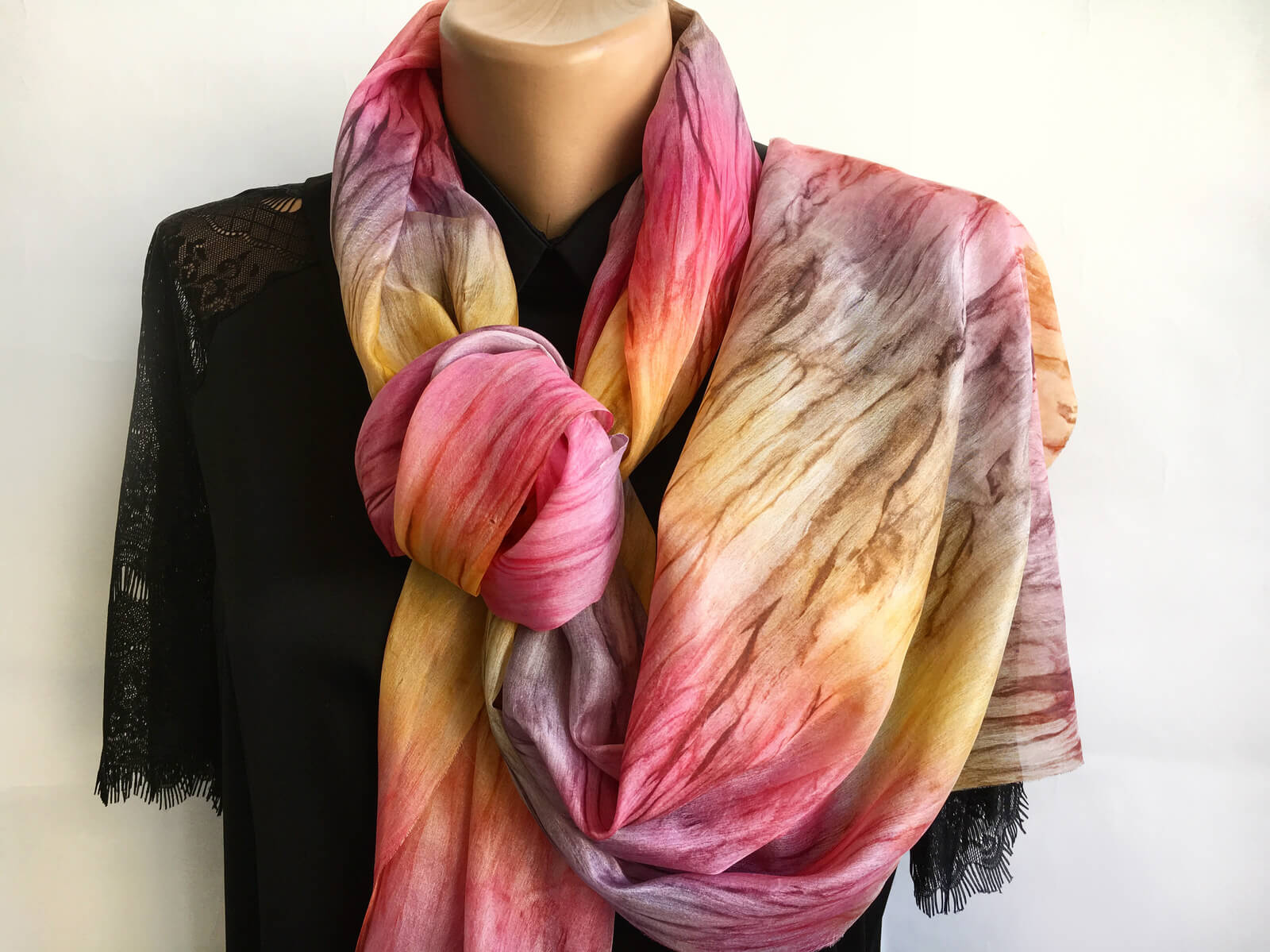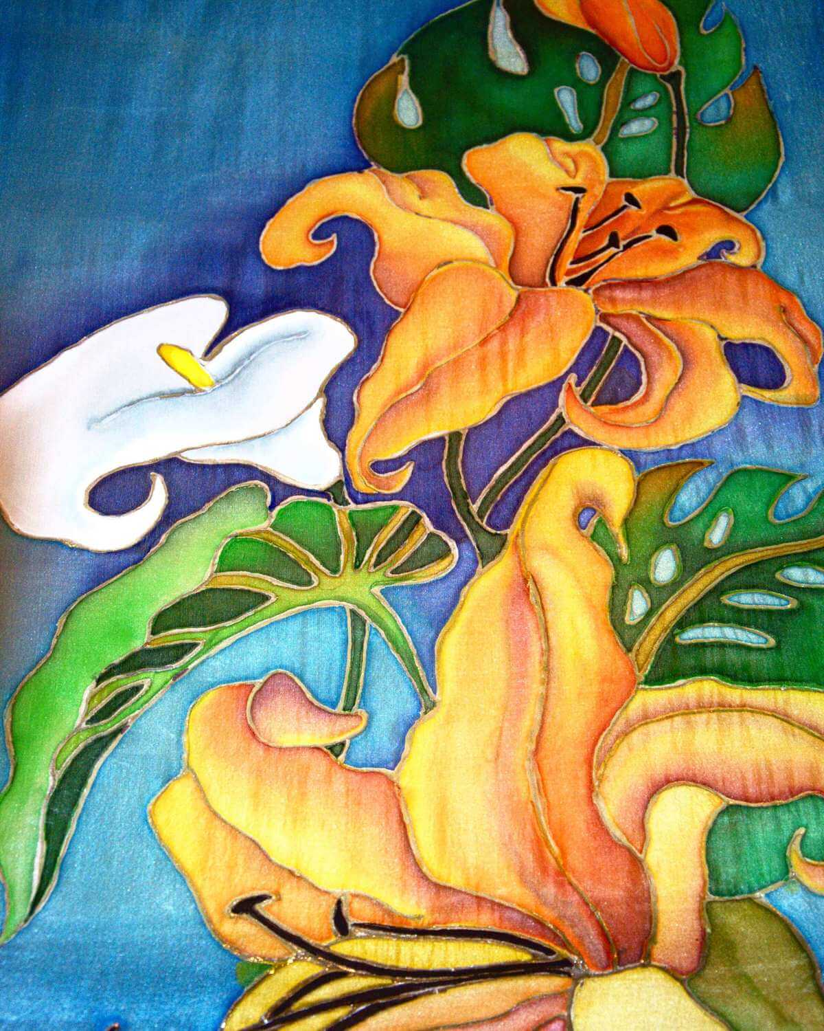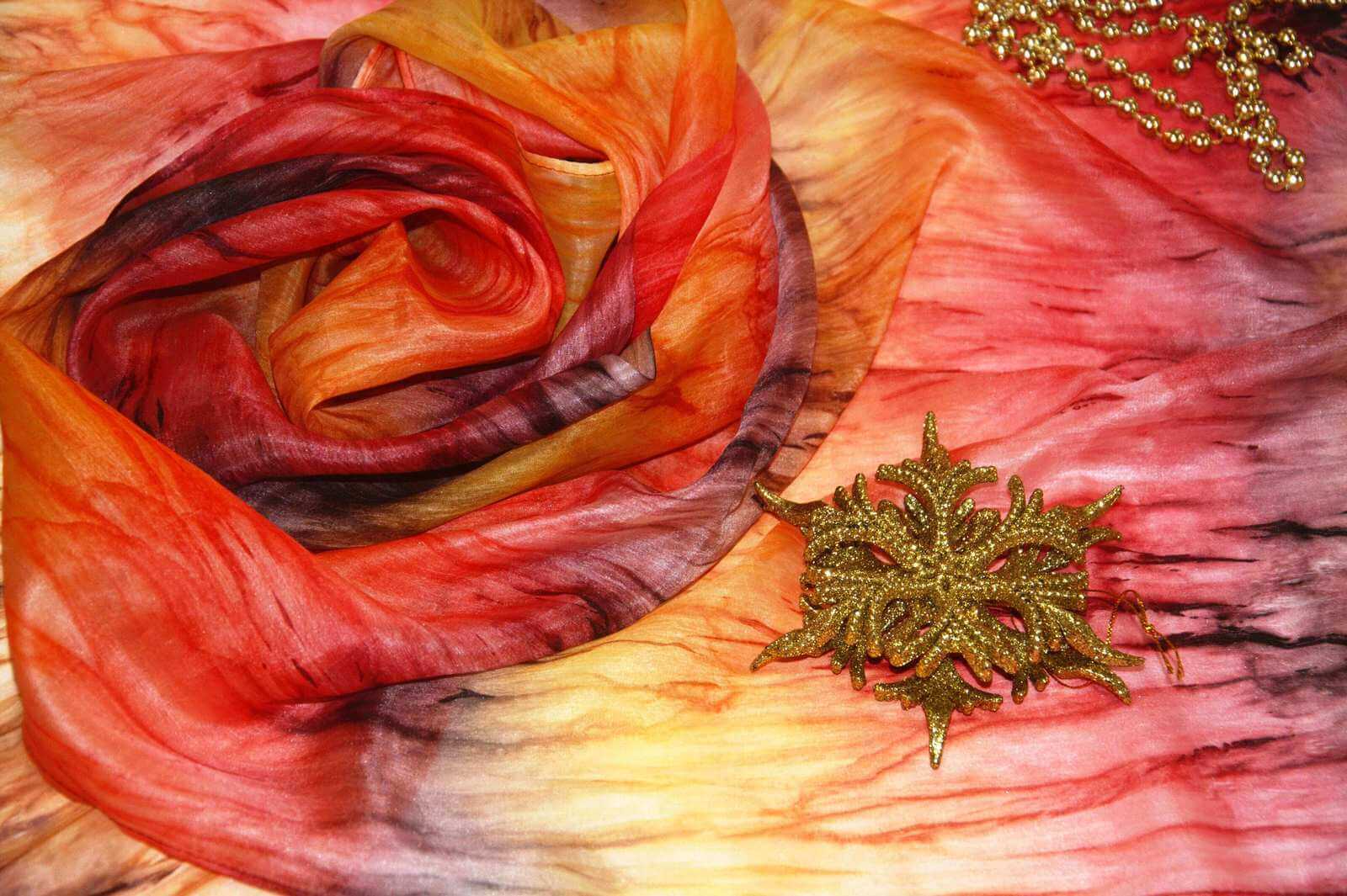 Натуральный шелк, профессиональные краски, которые не выгорают и не линяют, что позволяет сохранить изделие в первоначальном виде.