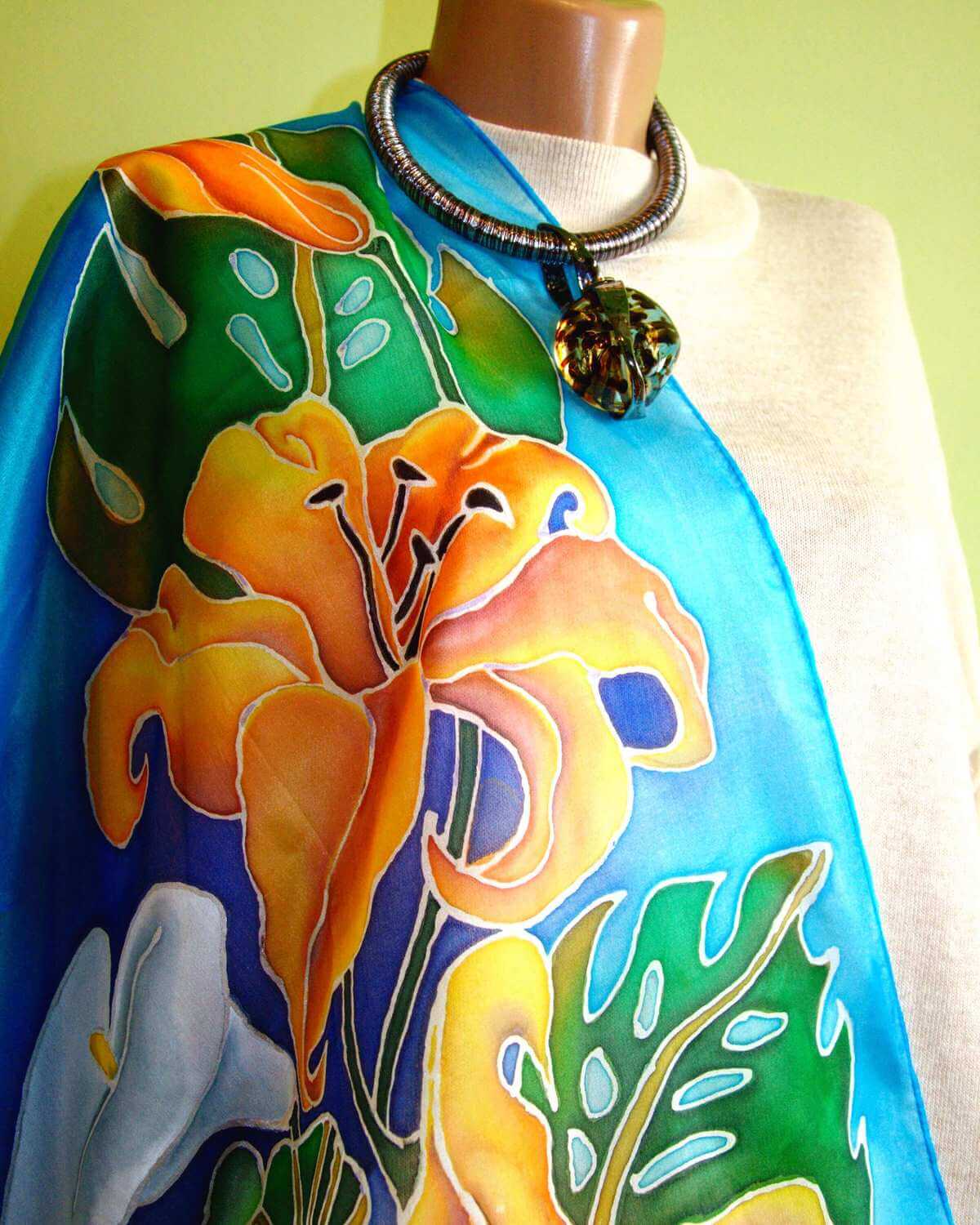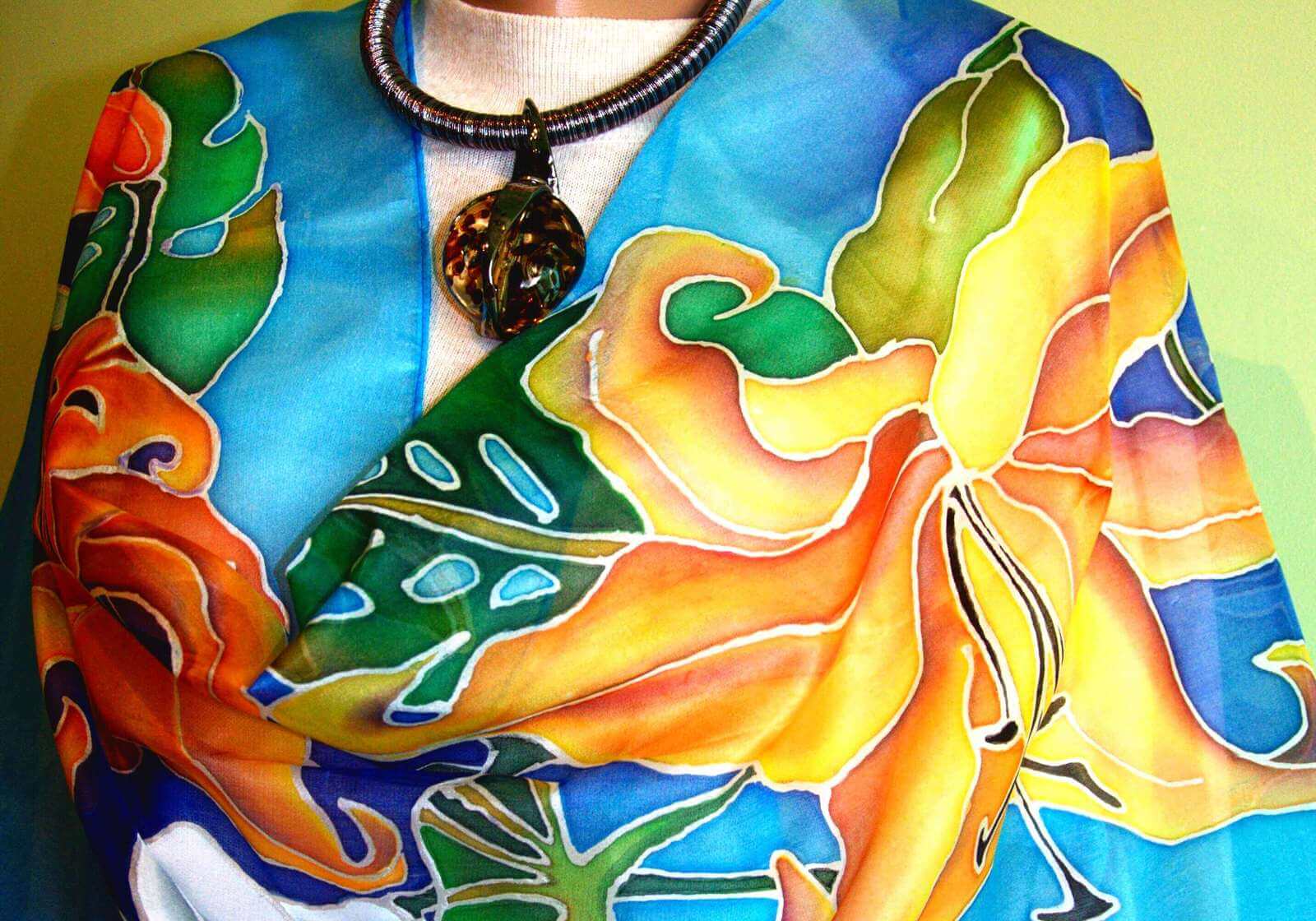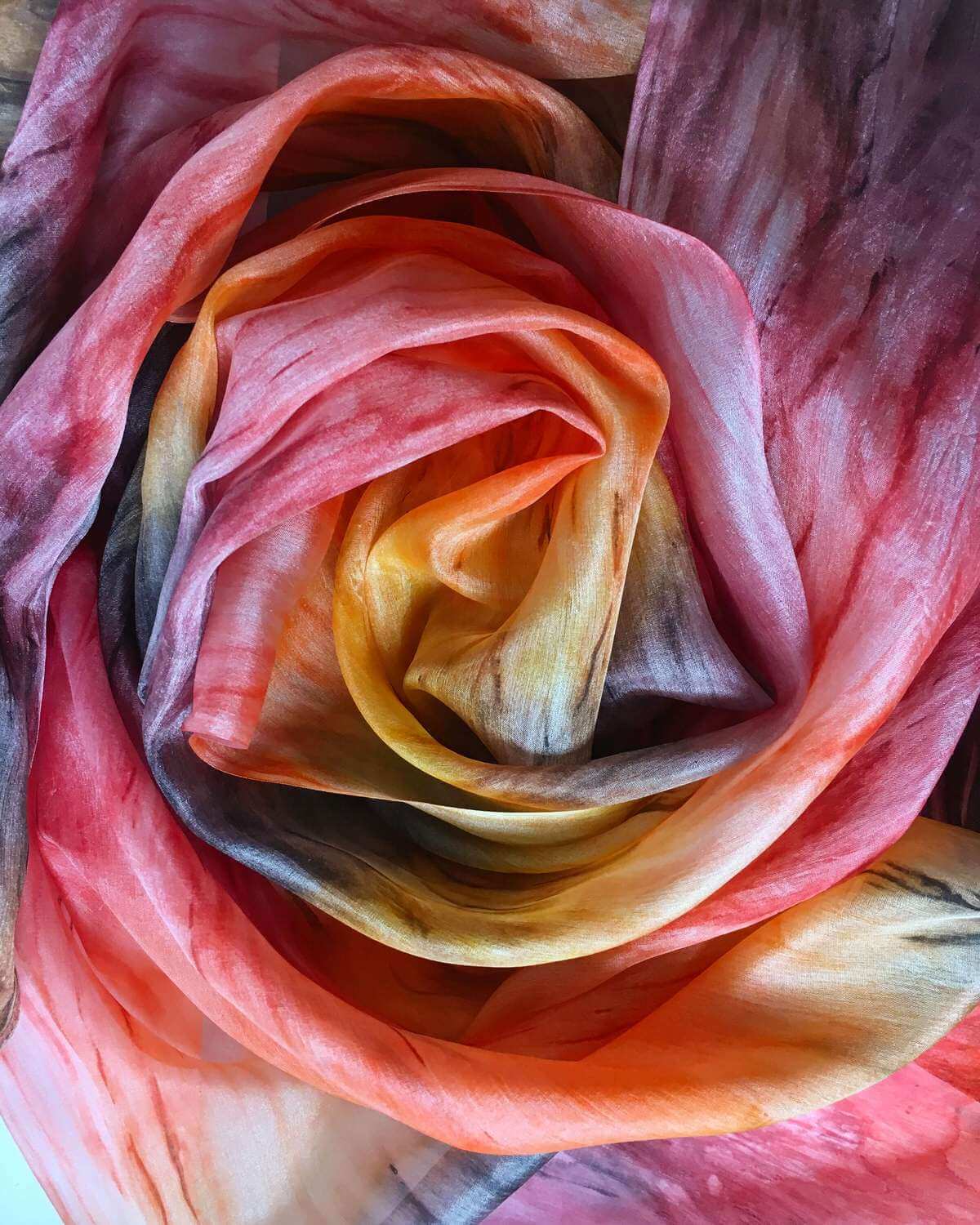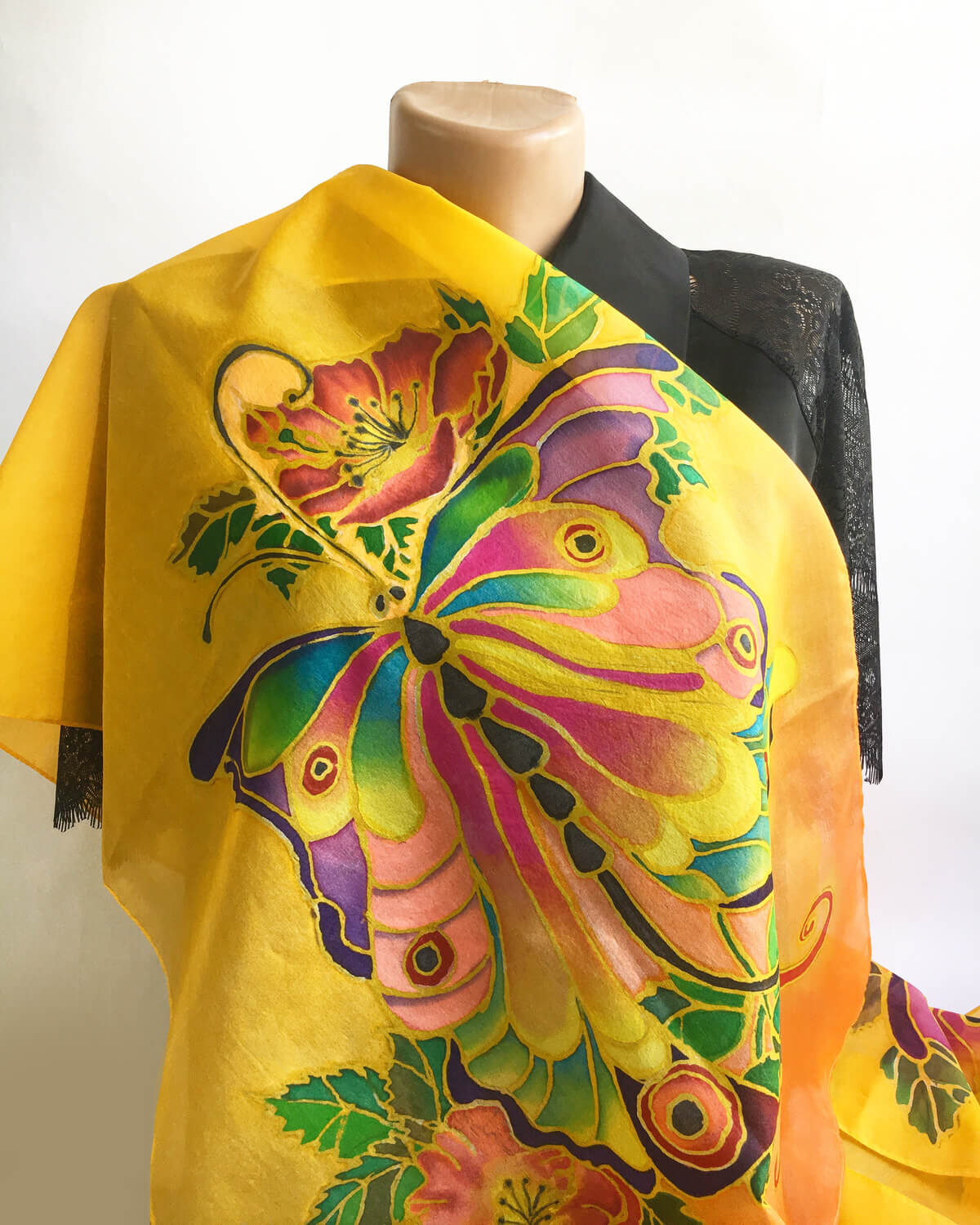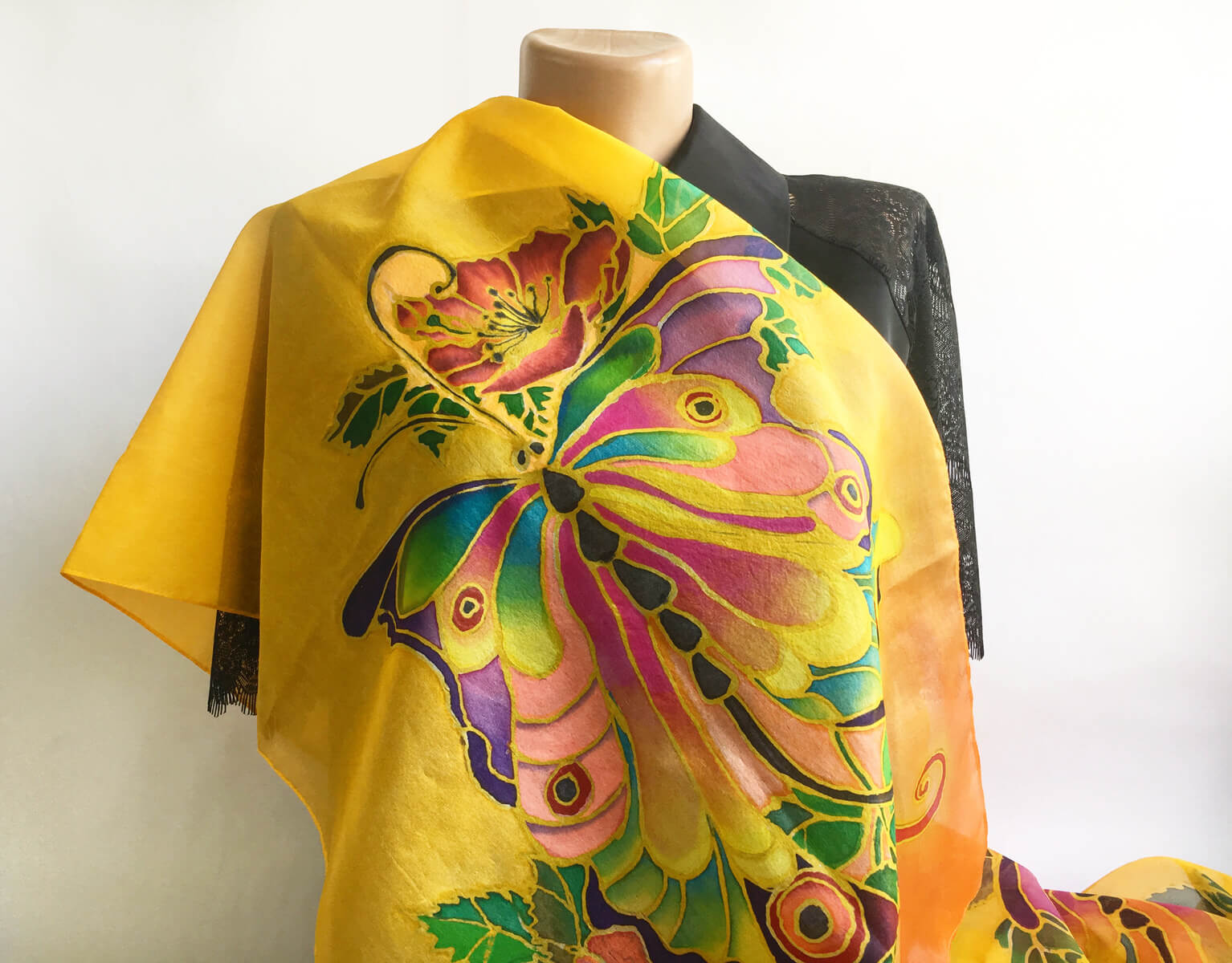 Натуральный шелк, профессиональные краски, которые не выгорают и не линяют, что позволяет сохранить изделие в первоначальном виде.