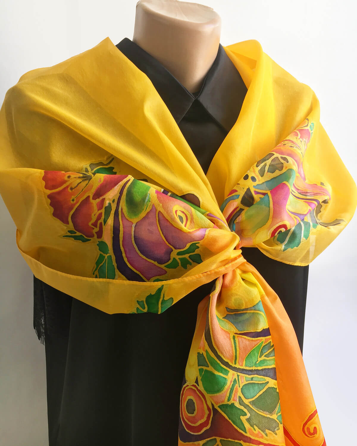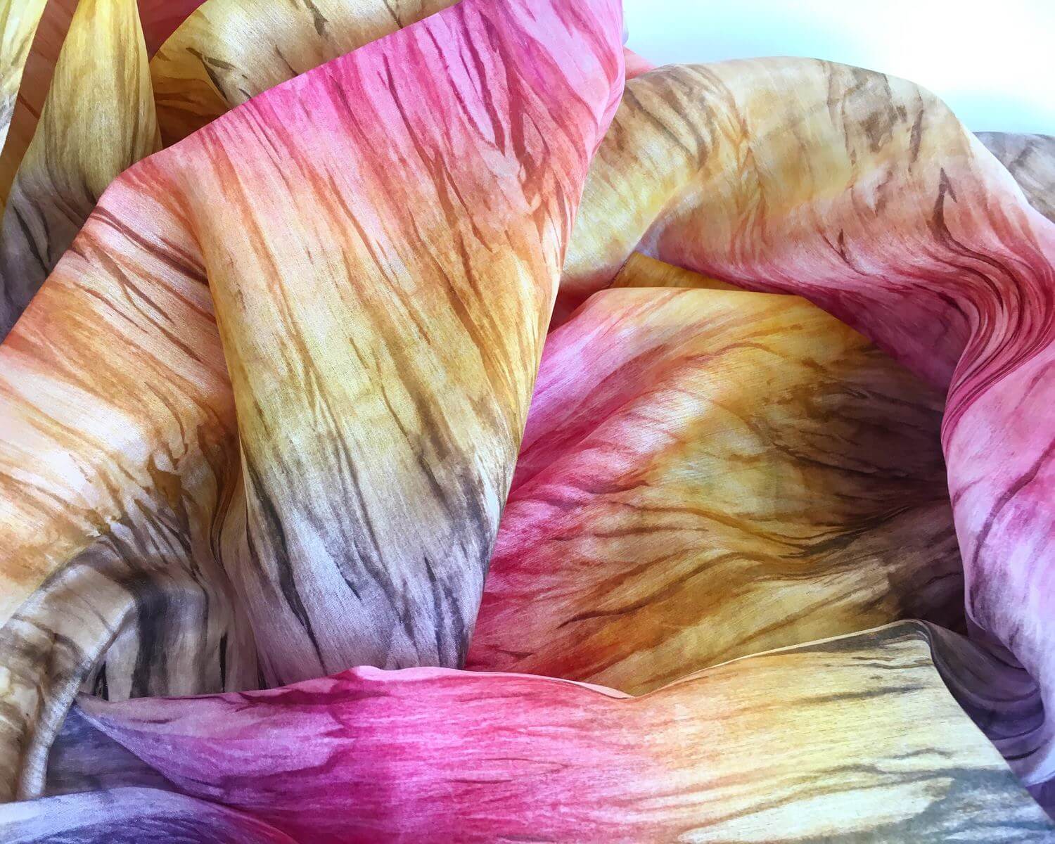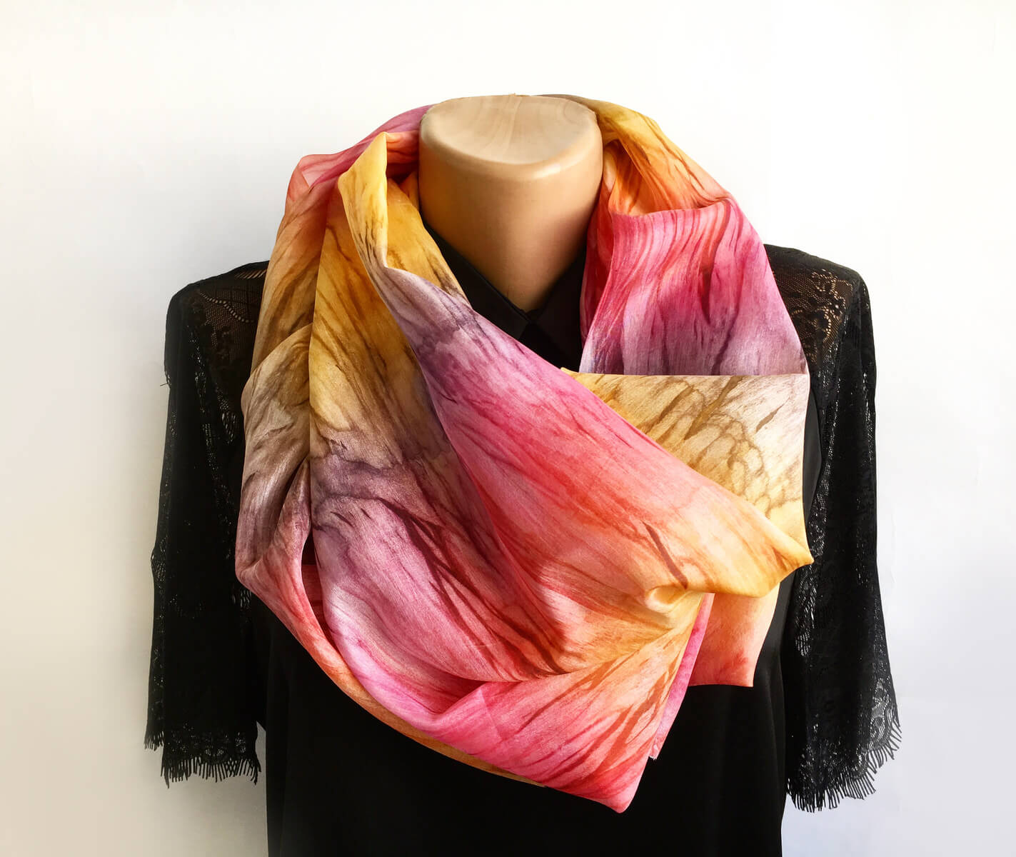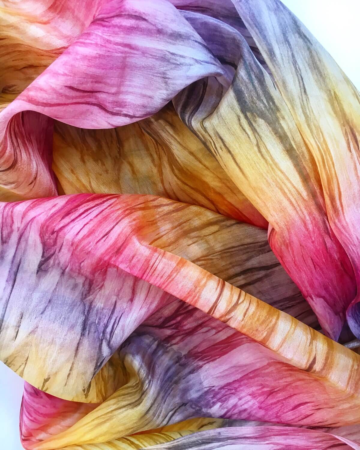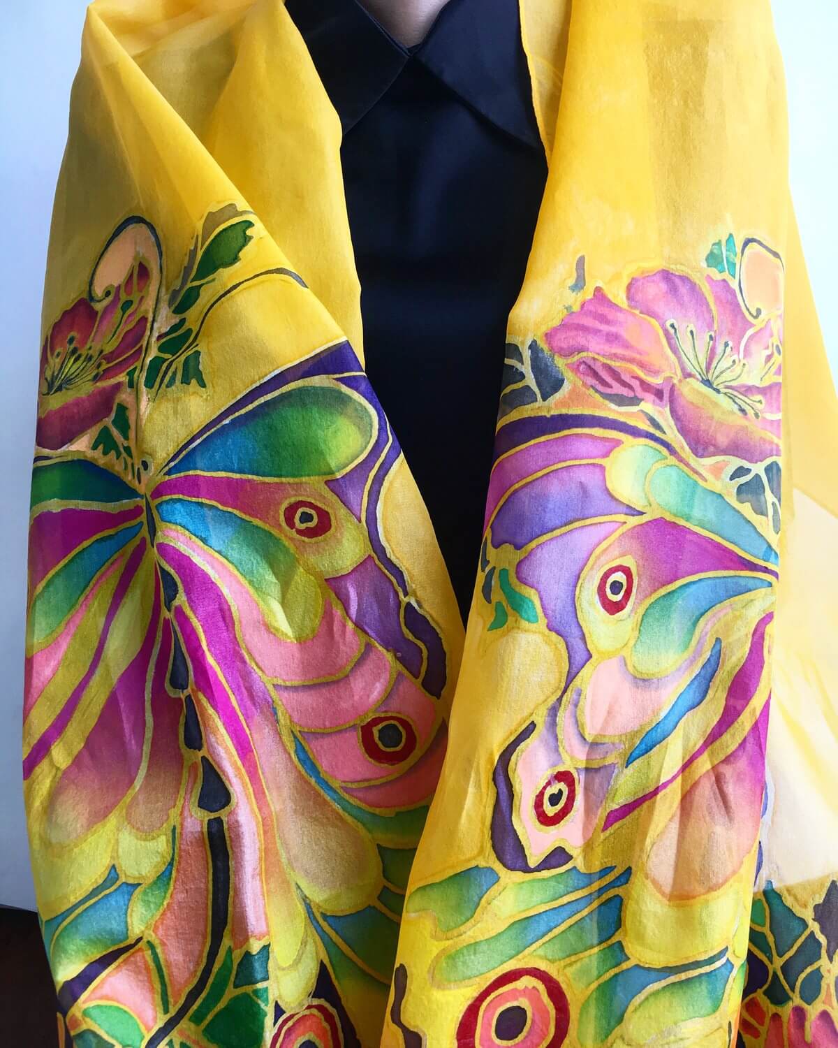 Натуральный шелк, профессиональные краски, которые не выгорают и не линяют, что позволяет сохранить изделие в первоначальном виде.