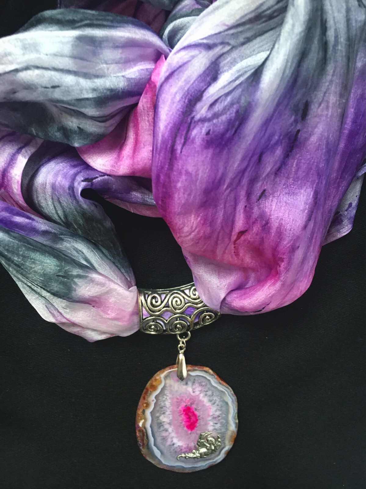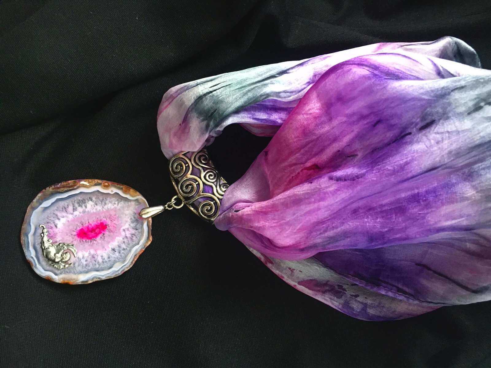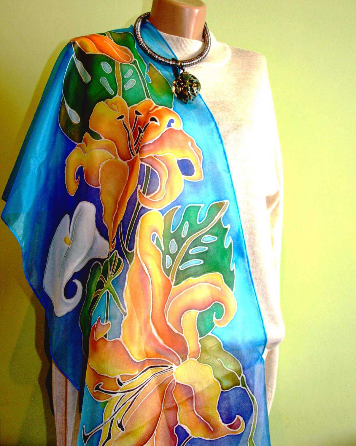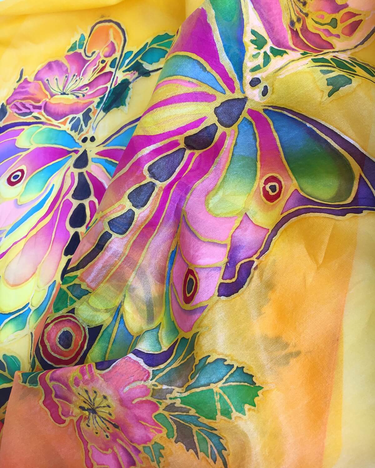 Ручная роспись по шелку. Дизайн разрабатывается мастером индивидуально. Возможность приобрести как готовое изделие, так и по разработанному эскизу.